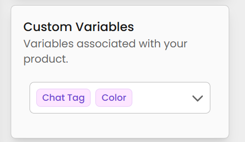 If you've created custom variables, you can associate them with a product here. Simply select one or more from the dropdown — these will be shown to customers during checkout to gather additional input like color, name tags, or quantity.