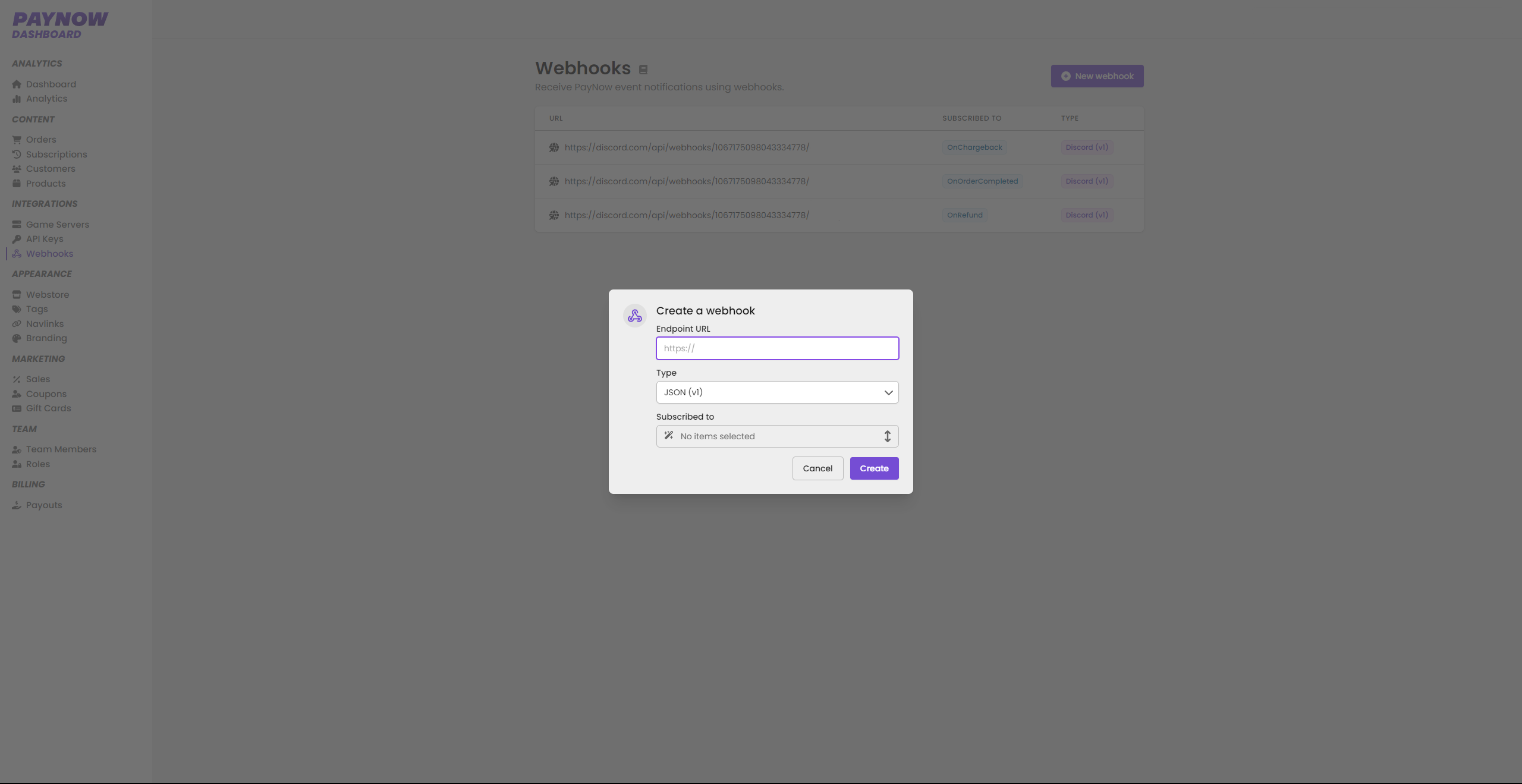 Discord and JSON webhooks allow you to receive notifications for events happening on your PayNow store. This can be useful for various things, like keeping track of activity.