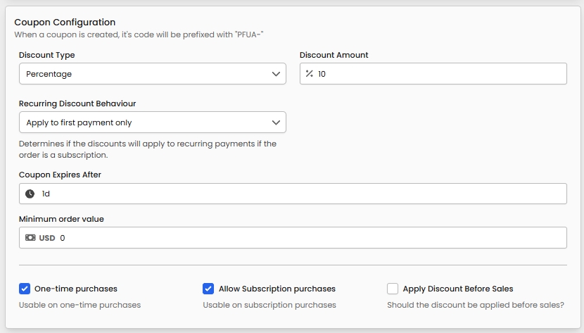 Coupon Configuration