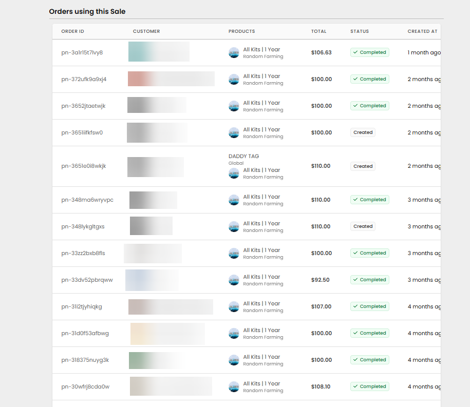 Orders using this sale
