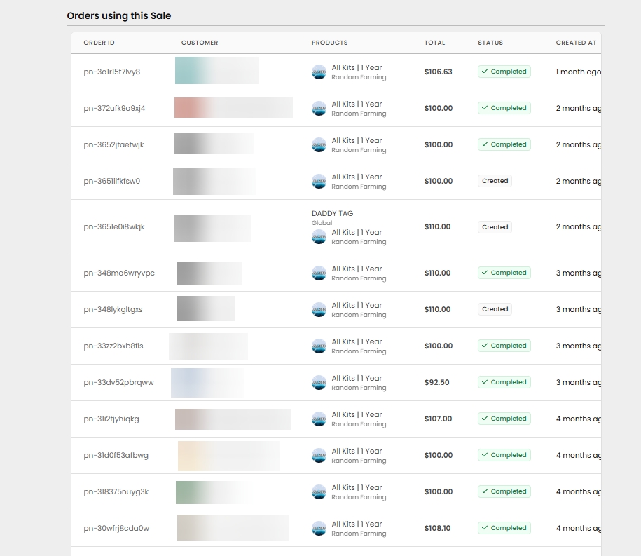 Once you're in the Sales page of your dashboard this will be the page that all your currently or previously ran sales will be displayed at. Indicating their name, status, discount, ends, and last updated!